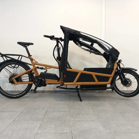 Als Familienkutsche ist dieses Bike top ausgestattet. Zwei separate Sitze nebeneinander mit einstellbarer Sitz- und Schlafposition und ein Einzelsitz vorne ermöglichen die Mitnahme von bis zu drei Kindern. Mit dem praktischen Regenverdeck kommen immerhin die Kinder trocken von A nach B.